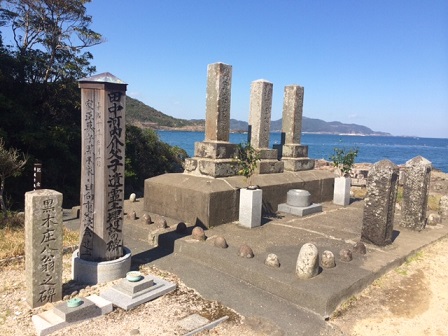 文久2年(1862)5月4日、細島の高島(コシマ)で3人の侍の惨殺死体が発見された。10日前、倒幕義拳のために伏見の寺田屋に集結していた勤皇の志士たちを久光の鎮撫使が説得するも乱闘となり、9名が犠牲となったのである。そして『寺田屋事件』に関連して薩摩へ護送される途中、この地で殺された勤皇の志士の三士である。一人の腹巻に「赤心報国黒田家臣海賀直求…」とあったことから、この辺り一帯がいつからか「黒田の家臣」と呼ばれるようになった。 「黒田の家臣」資料より