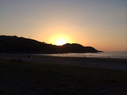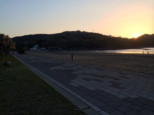 朝日が昇る前の海岸。