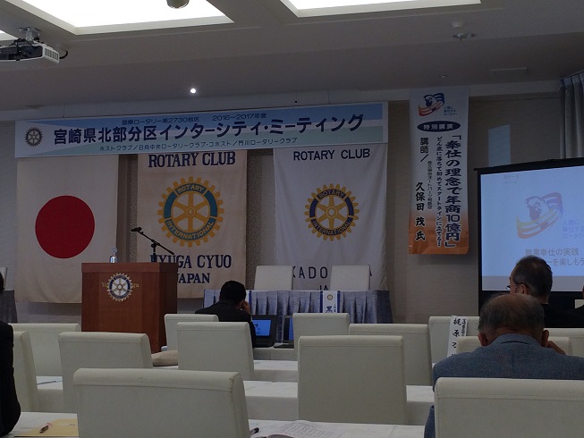 今年のガバナー方針の「職業奉仕の実践」から、宮崎北RCの(株)久保田オートパーツの久保田茂氏に「職業奉仕の理念で年商10億円」~どん底に落ちて、初めてスタートラインに立てる~の内容でご講演をいただきました。