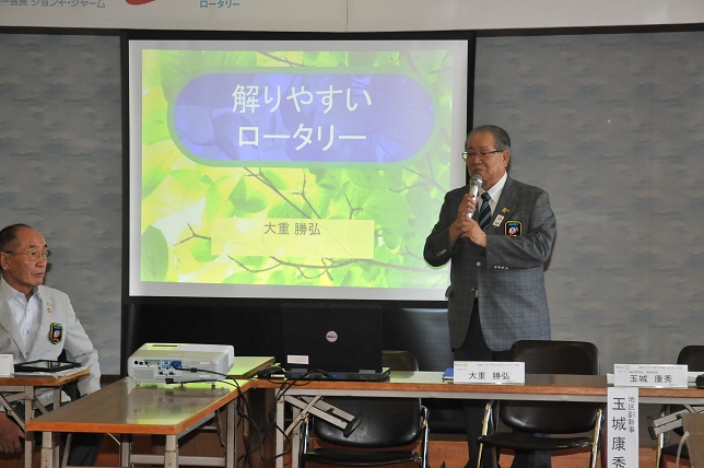 フォーラムでは、PowerPointを用いて「わかりやすいロータリー」の講演がありました。