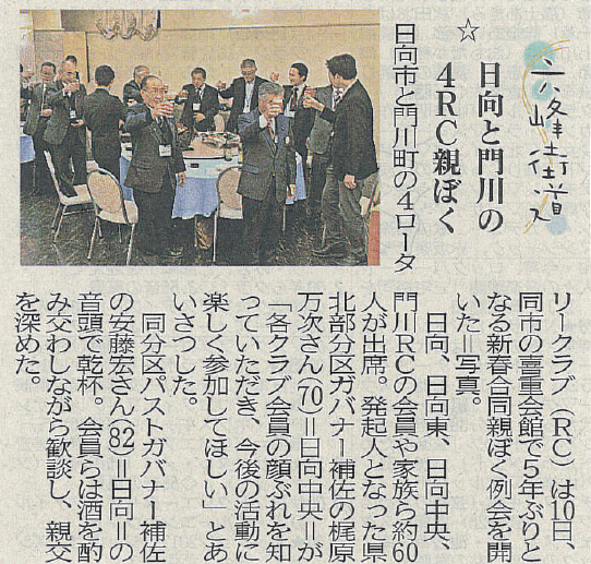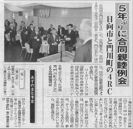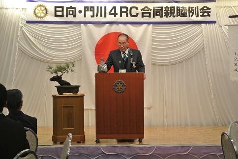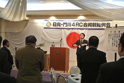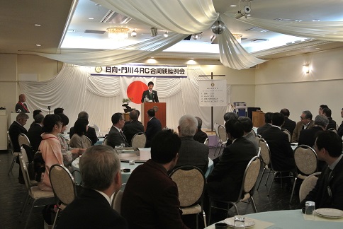 日向RC,日向東RC,日向中央RC、門川RCの4クラブで5年ぶりの合同親睦例会を、今年度のガバナー補佐、梶原万次氏の音頭で開催されることになりました。