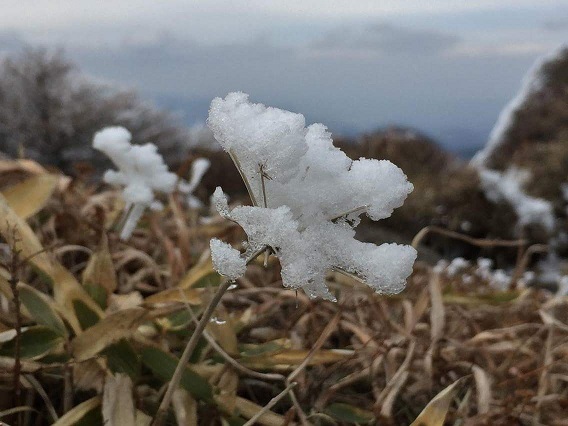 白くなっているのは雪なのですが、ミヤマキリシマの枝についているのでまるで白い花のように見えます。