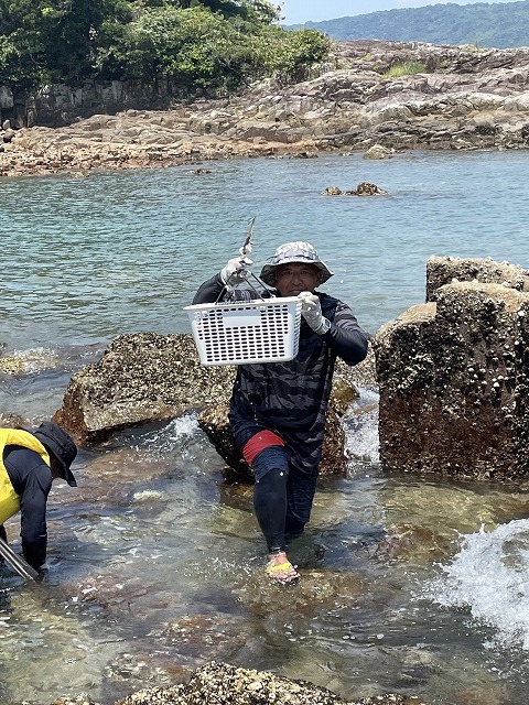 黒田の家臣周辺で、藻場育成の支障となるウニの除去活動。